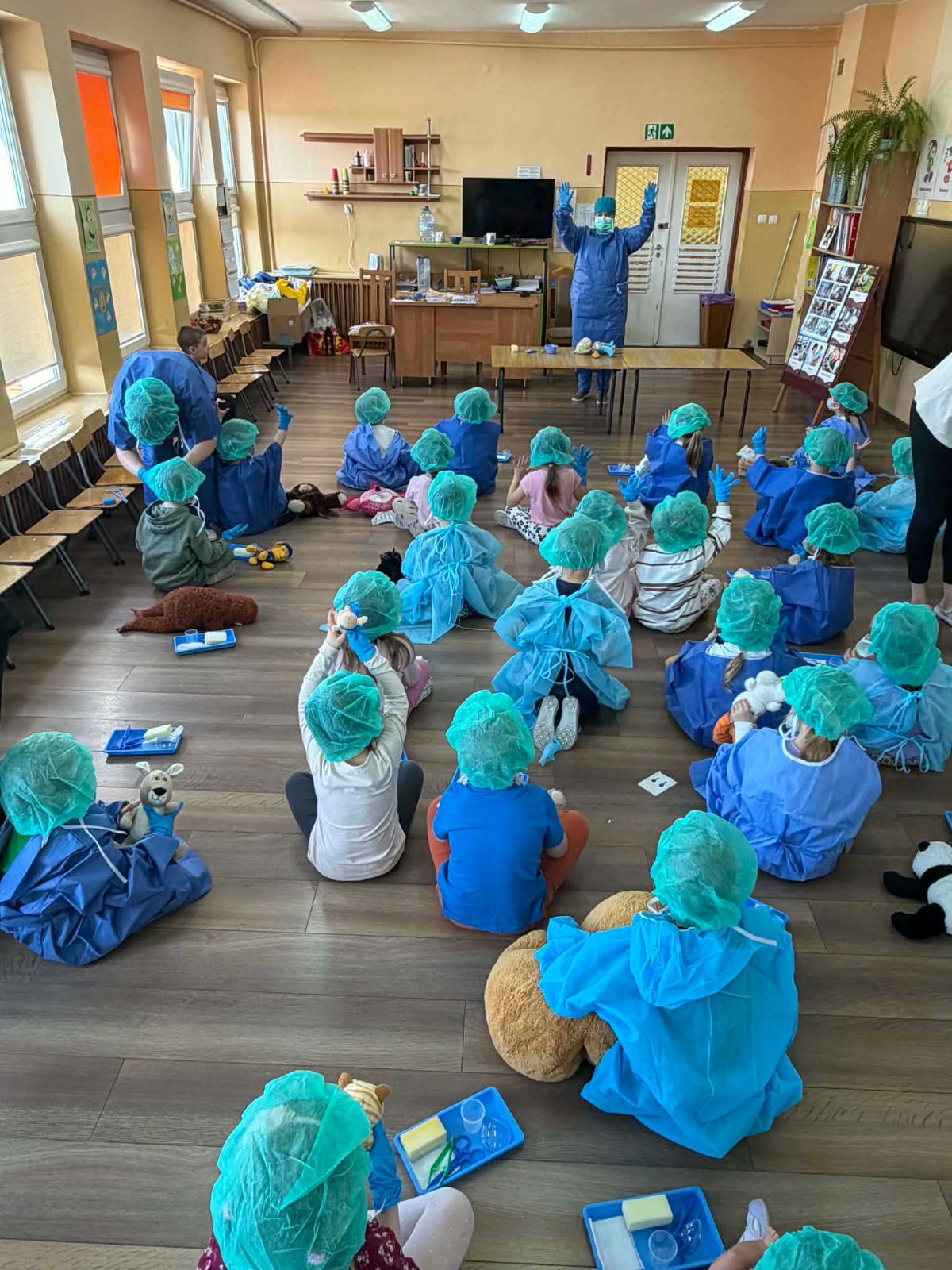 Spotkanie Pszczółek i Wiewiórek z pielęgniarką operacyjną.